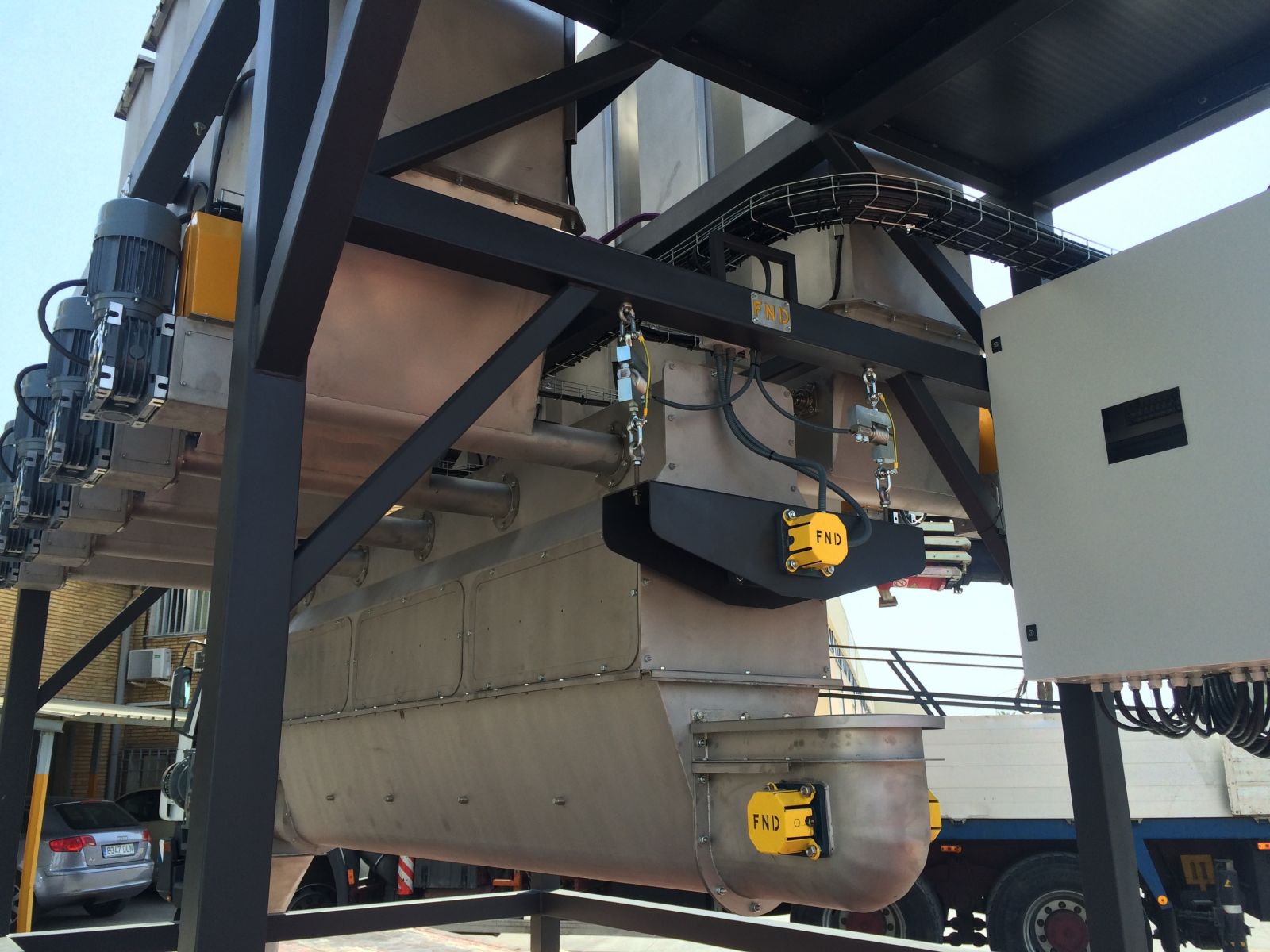 Equipo de dosificación de 10 elementos de micros de 300 Kg cada uno, con niveles de mínima e indicadores de vacío, báscula giratoria de 10/15 gr de precisión. Provisto de estructura con balcón para palets o big bag, pasillo intermedio, celdas con tapa en acero inoxidable, dosificadores con recubrimiento de polímero, vaciado con transgran, contros de pesada y maniobra, cuadro eléctrico y escalera para acceso a plataforma.